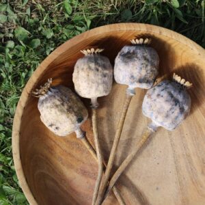 Poppy seedheads are highly decorative and make a wonderful addition to a dry flower arrangement. To dry, cut stems and hang upside down in bunches in a cool, dark and well ventilated space.